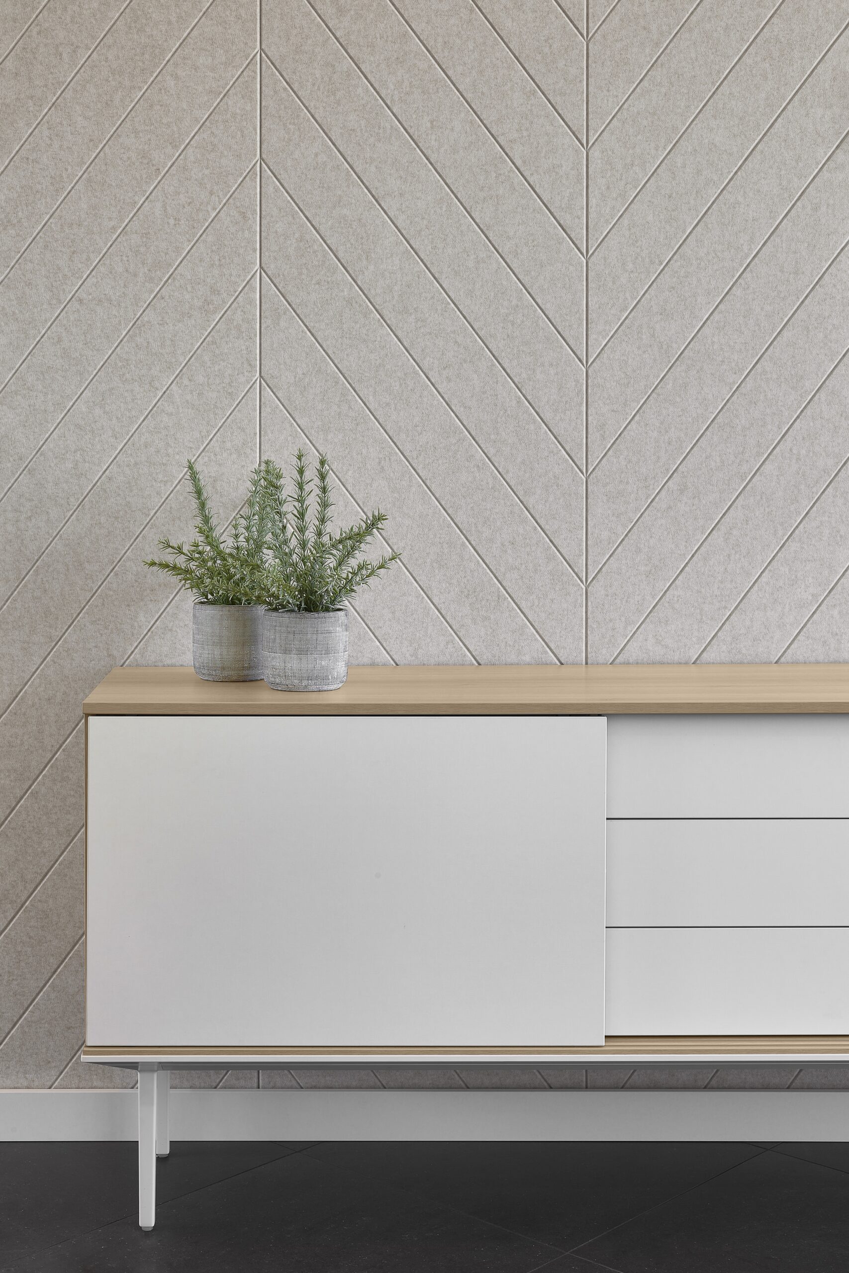 Ecowall V‑Cut di ECOcero è un pannello acustico a parete in fibra di poliestere riciclata pensato per unire funzionalità, estetica e sostenibilità nei progetti di interior design. Parte della collezione ECOwall, il modello V‑Cut si caratterizza per il suo taglio a “V” che crea superfici continue e pattern visivi unici, donando personalità agli spazi oltre a migliorare il comfort sonoro.